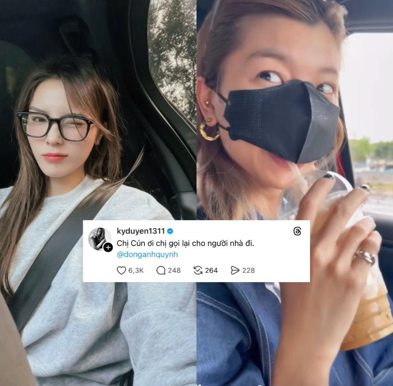Ngay khi đoạn clip lên sóng, Kỳ Duyên lập tức lên tiếng. Nàng hậu viết trên trang cá nhân: "Chị Cún ơi chị gọi lại cho người nhà đi" và tag thẳng tên Đồng Ánh Quỳnh.