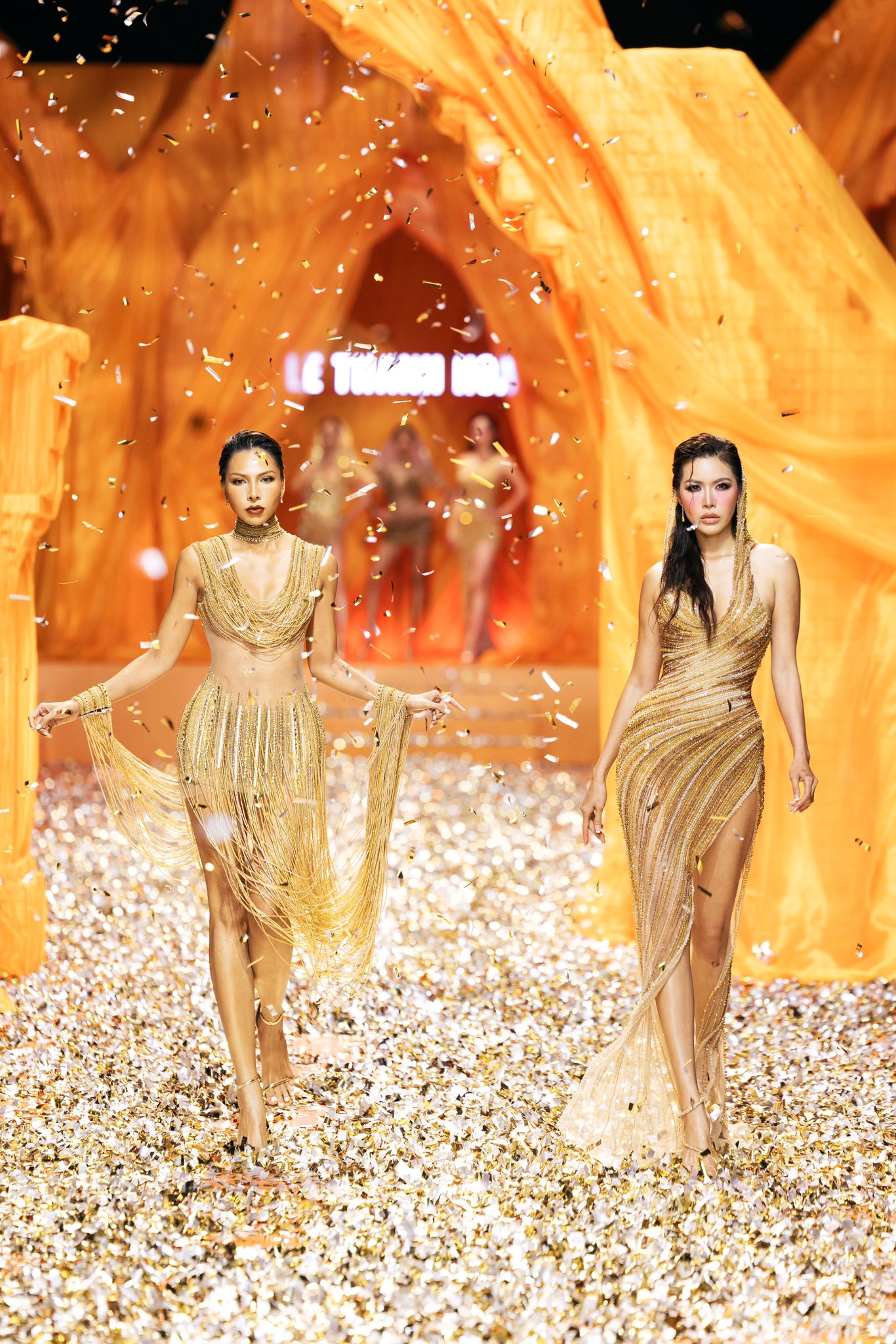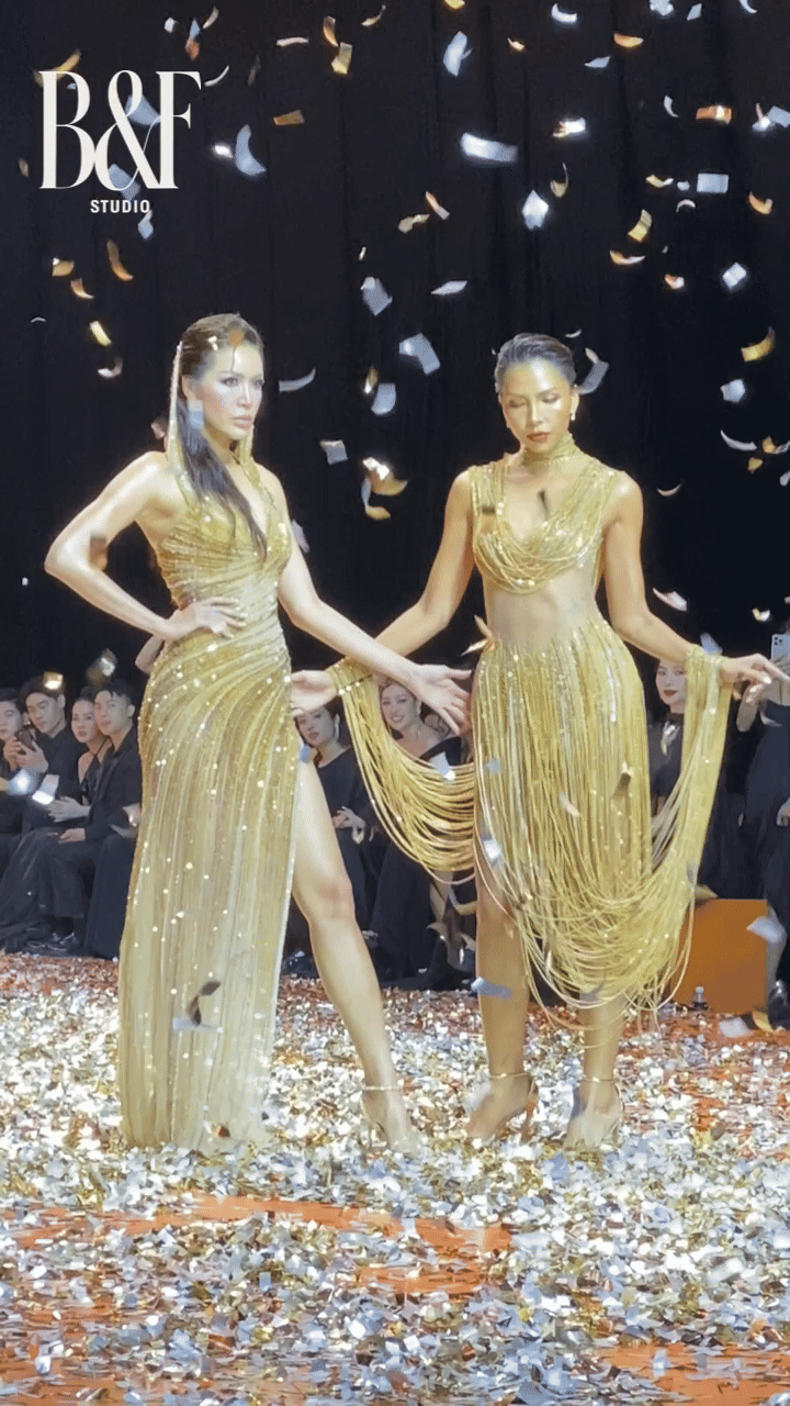 Trong sự kiện lần này, cả Minh Triệu và Kỳ Duyên cùng góp mặt nhưng ở hai cương vị khác nhau. Xuất hiện trên sàn runway, song hành cùng Minh Triệu không phải Kỳ Duyên mà là Minh Tú. Bộ đôi có màn catwalk đỉnh của chóp, so kè body lẫn thần thái cực gắt trên sàn diễn.
