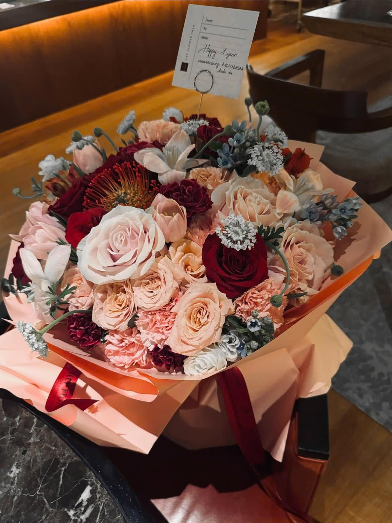 Trước đó, hoa hậu hoàn vũ Việt Nam để lộ lời chúc trên tấm thiệp được cho là từ Thiên Ân với cách xưng hô cực tình "babi iu".