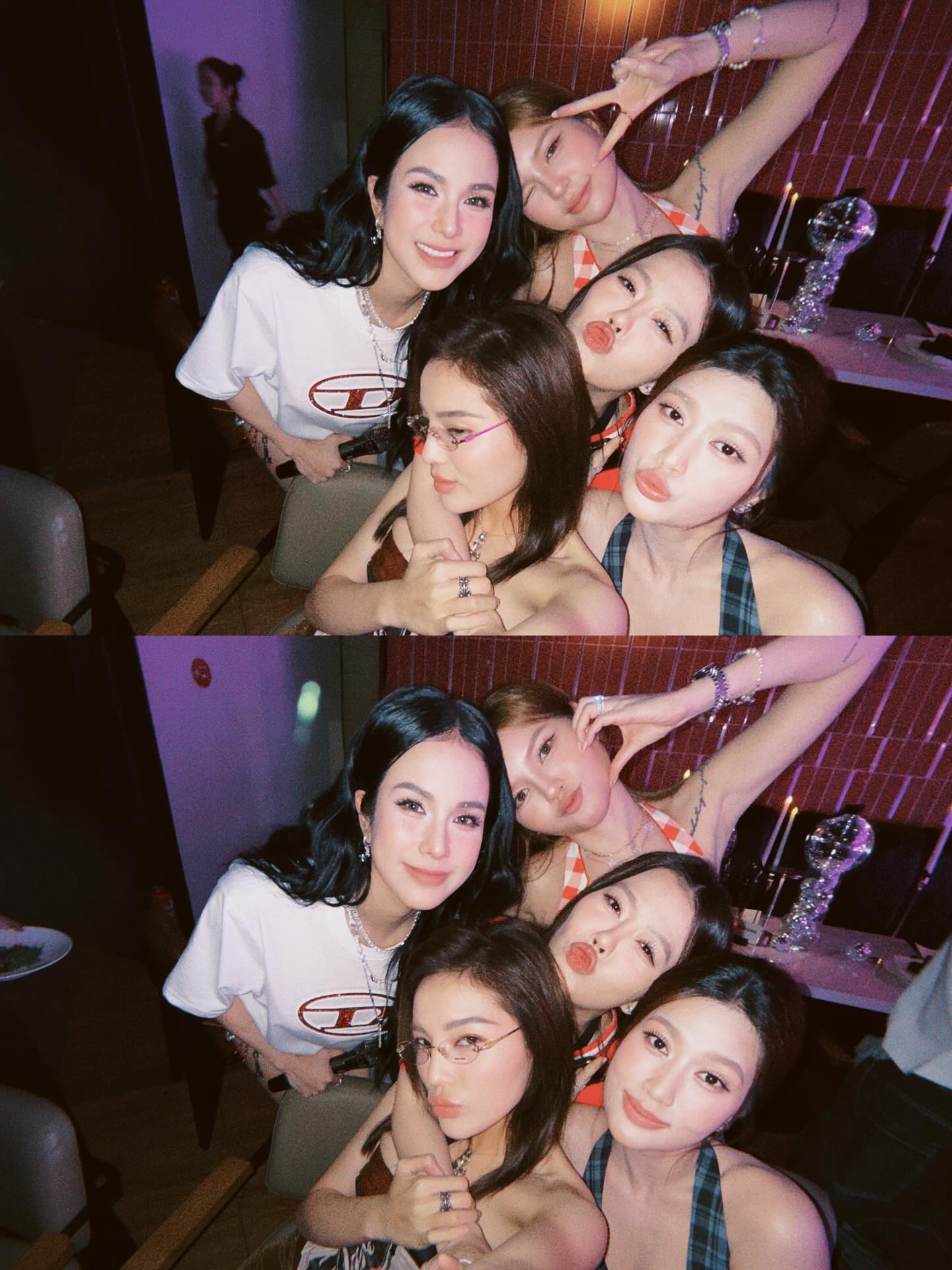 Trong khung hình, hội "phú bà" được dịp hội tụ bao gồm Diệp Lâm Anh, Lucie Nguyễn, Thiên Ân, Kỳ Duyên gây sốt. Hoa hậu hoàn vũ Việt Nam 2024 đăng hình kèm dòng trạng thái: "Mừng sinh nhật Anh. Gặp người quen hông ạ, có thân hông dạ?"