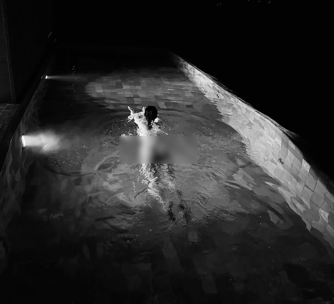 Không dừng lại ở đó, Kỳ Duyên còn chia sẻ loạt ảnh chụp trong hồ bơi riêng tư vào ban đêm. Một trong những khoảnh khắc gây sốc nhất chính là hình ảnh nàng hậu quay lưng về phía ống kính, để lộ tấm lưng trần qua dáng pose "hiểm hóc".