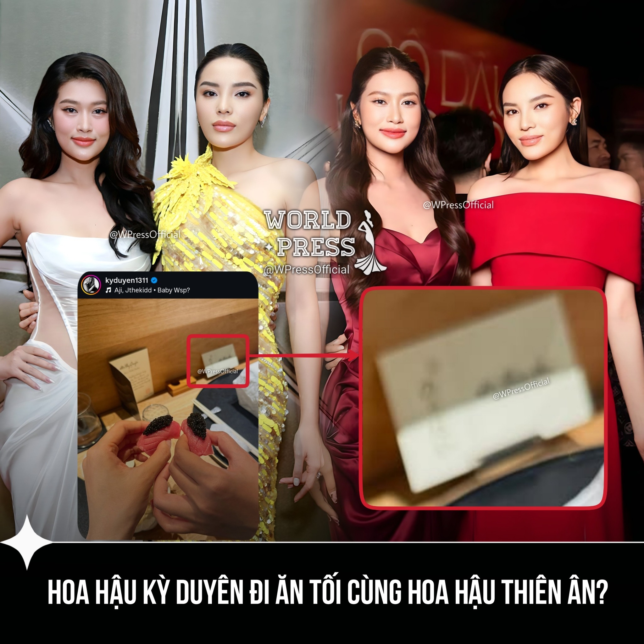 Trước đó không lâu, Hoa hậu Kỳ Duyên đăng tải hình ảnh đi ăn tại một nhà hàng sang trọng. Nhiều netizen soi ra tờ giấy ghi tên của người đi cùng, được cho có chữ "Thiên Ân".