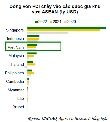 Đặc biệt, làn sóng FDI "thế hệ mới" bao gồm công nghệ cao, xe điện, năng lượng tái tạo, chất bán dẫn nổi lên như một xu hướng toàn cầu, trong đó Việt Nam là một trong những điểm đến phù hợp nhờ việc tham gia 16 hiệp định FTA, nâng cấp quan hệ đối tác chiến lược toàn diện với Mỹ, Nhật, Úc, Hàn; các chính sách cam kết đầu NetZero; cơ chế chính sách thu hút vốn vào lĩnh vực mới). Việt Nam tiếp tục giữ vị trí thứ 3 về thu hút dòng vốn FDI nhiều nhất trong khối ASEAN các năm qua.