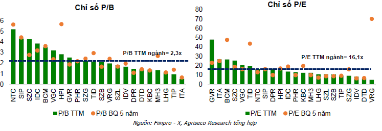 Các DN BĐS KCN đang giao dịch tại mức P/E là 16,1x lần và P/B là 2,3x lần, thấp hơn so với bình quân 5 năm trở lại đây. Nhìn chung, định giá ngành vẫn đang ở mức khá hấp dẫn so với tiềm năng tăng trưởng của doanh nghiệp nói riêng và thị trường bất động sản khu công nghiệp nói chung trong các năm tới.