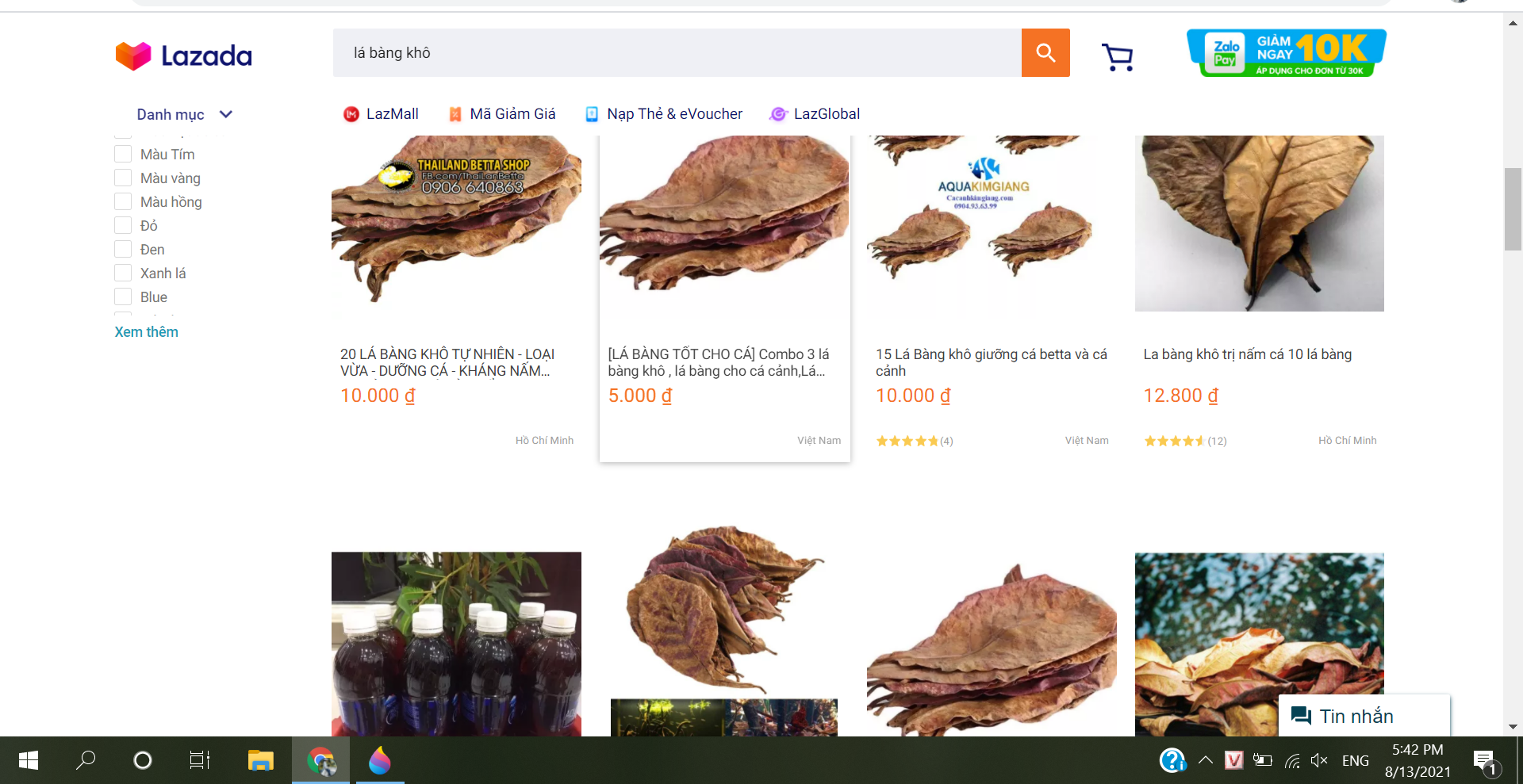Tương tự, người tiêu dùng không quá khó để có thể tìm lá bàng khô trên Lazada. Nhìn chung giá lá bàng khô bán tại Lazada cũng tương tự như Shopee, Tiki và một số trang thương mại điện tử khác. Không những thế, số lượng shop bán mặt hàng này tại Lazada cũng rất nhiều.