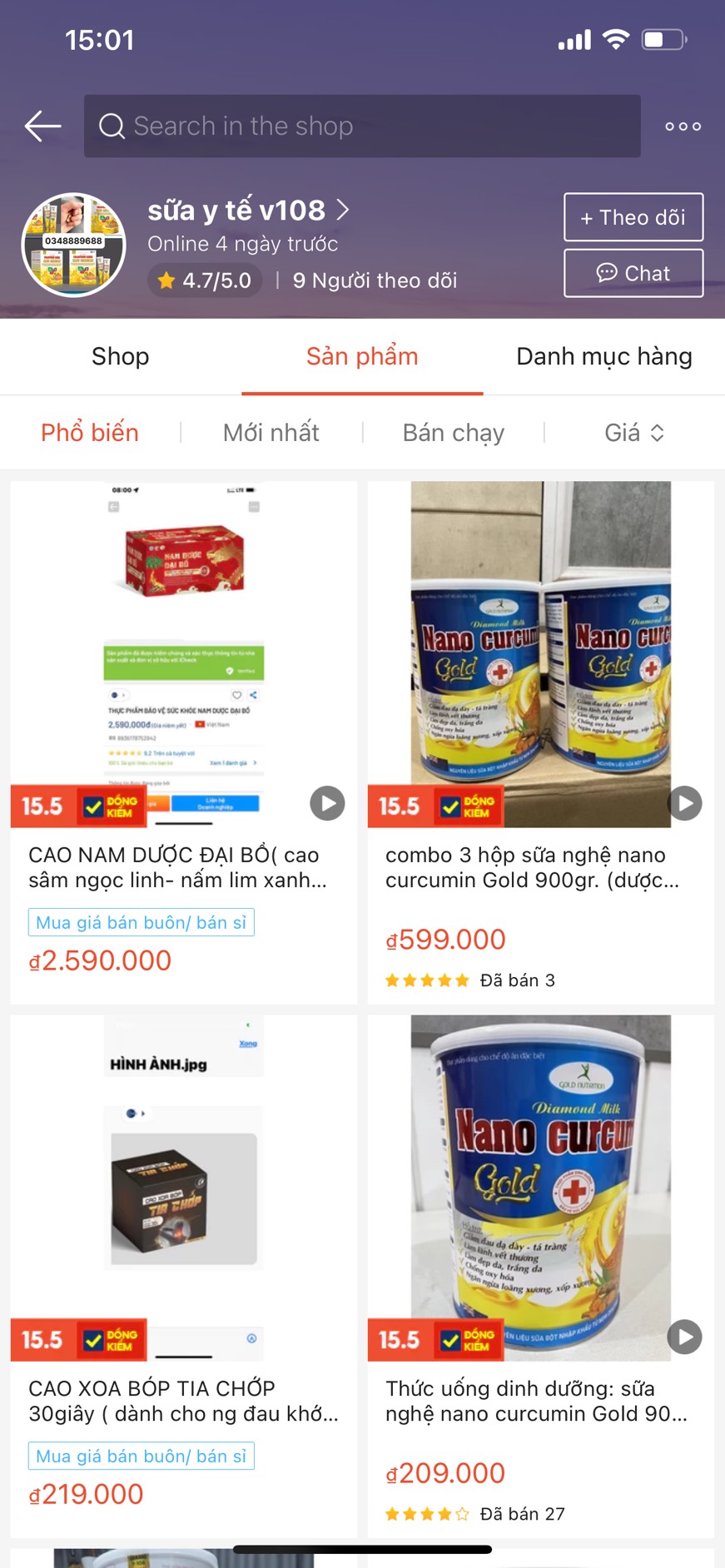 Sản phẩm sâm chỉ có một địa chỉ bán trên google và shopee.