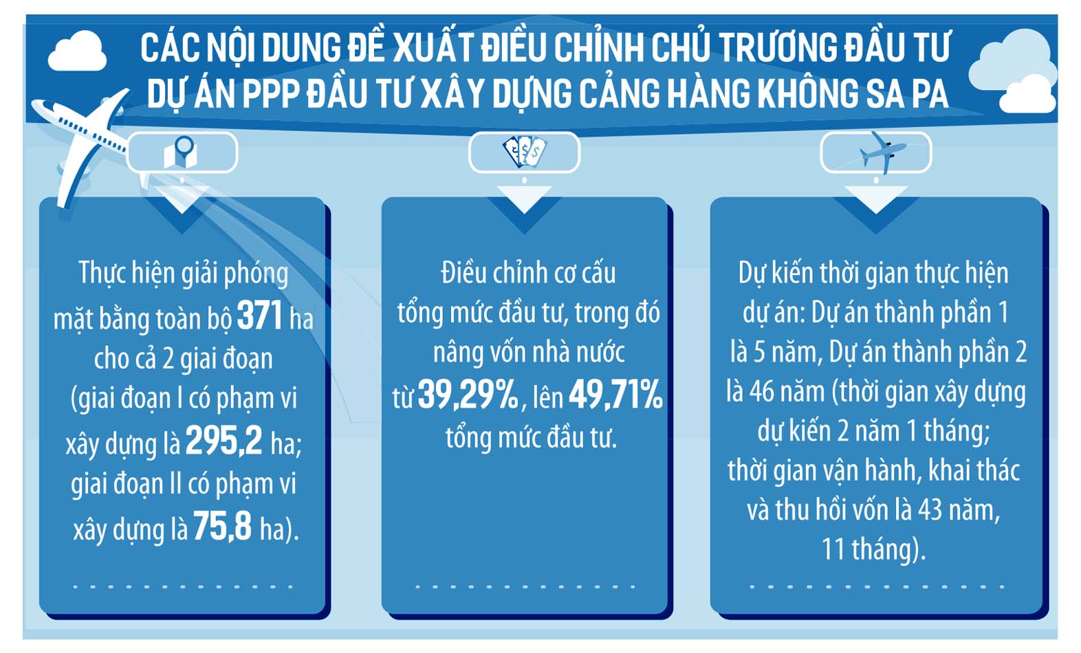 Dự án Đầu tư xây dựng Cảng hàng không Sa Pa được Thủ tướng phê duyệt chủ trương đầu tư tại Quyết định số 1773/QĐ-TTg ngày 21/10/2021, với tổng mức đầu tư 6.948 tỷ đồng. Nhưng sau gần 4 năm được phê duyệt chủ trương, dự án này vẫn chưa chọn được nhà đầu tư để có thể triển khai xây dựng. Việc không tìm được nhà đầu tư là một trong những lý do khiến UBND tỉnh Lào Cai phải xin điều chỉnh chủ trương đầu tư Dự án.