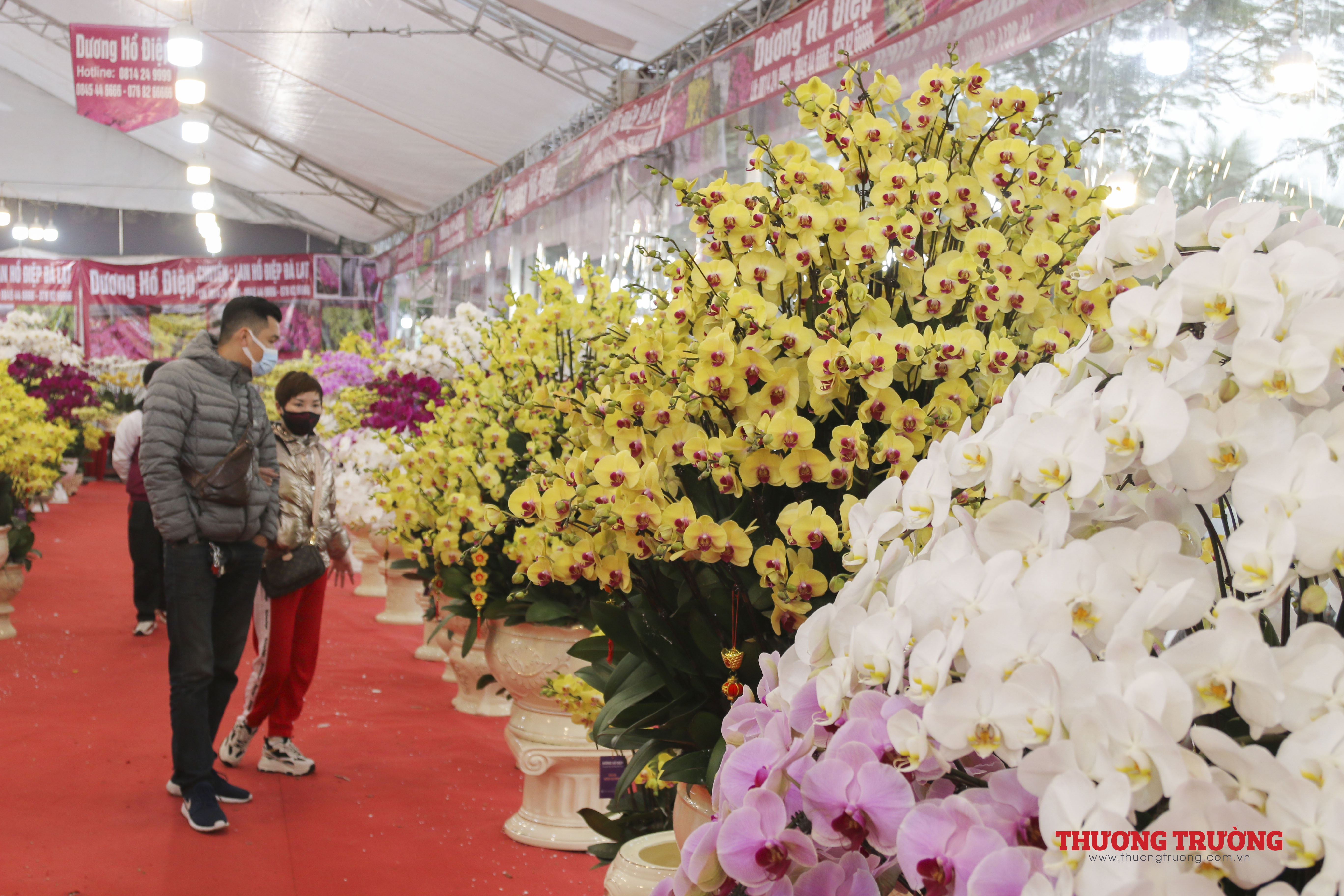Chỉ còn ít ngày nữa là đến Tết Nguyên đán Tân Sửu 2021, để phục vụ nhu cầu mua hoa lan chơi Tết của người dân, dọc nhiều tuyến phố của Thủ đô như: Lạc Long Quân, Phạm Hùng, Hoàng Hoa Thám, Tố Hữu... các cửa hàng đã bắt đầu bày bán hoa lan. Tại khu vực trưng bày hoa lan đều được trang bị đầy đủ hệ thống điện thắp sáng, đảm bảo lan hồ điệp tươi, nở lâu và đẹp.