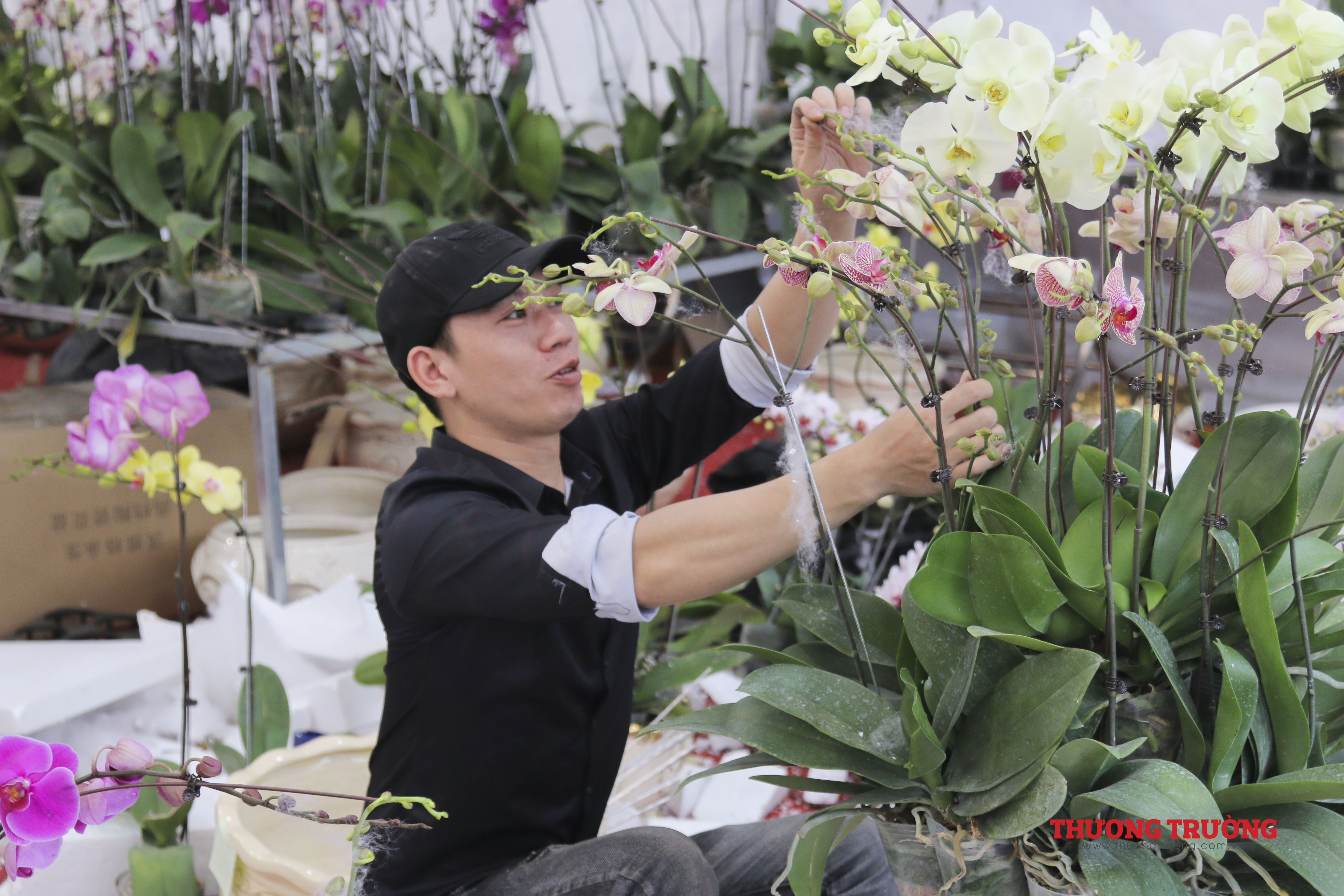 Những ngày giáp Tết Nguyên đán, kẻ ra người vào mua lan tấp nập. Nhân viên phải làm việc liên tục từ vận chuyển hoa lên xe giao tới khách hàng, cho tới sửa lại các chậu theo nhu cầu của người mua.