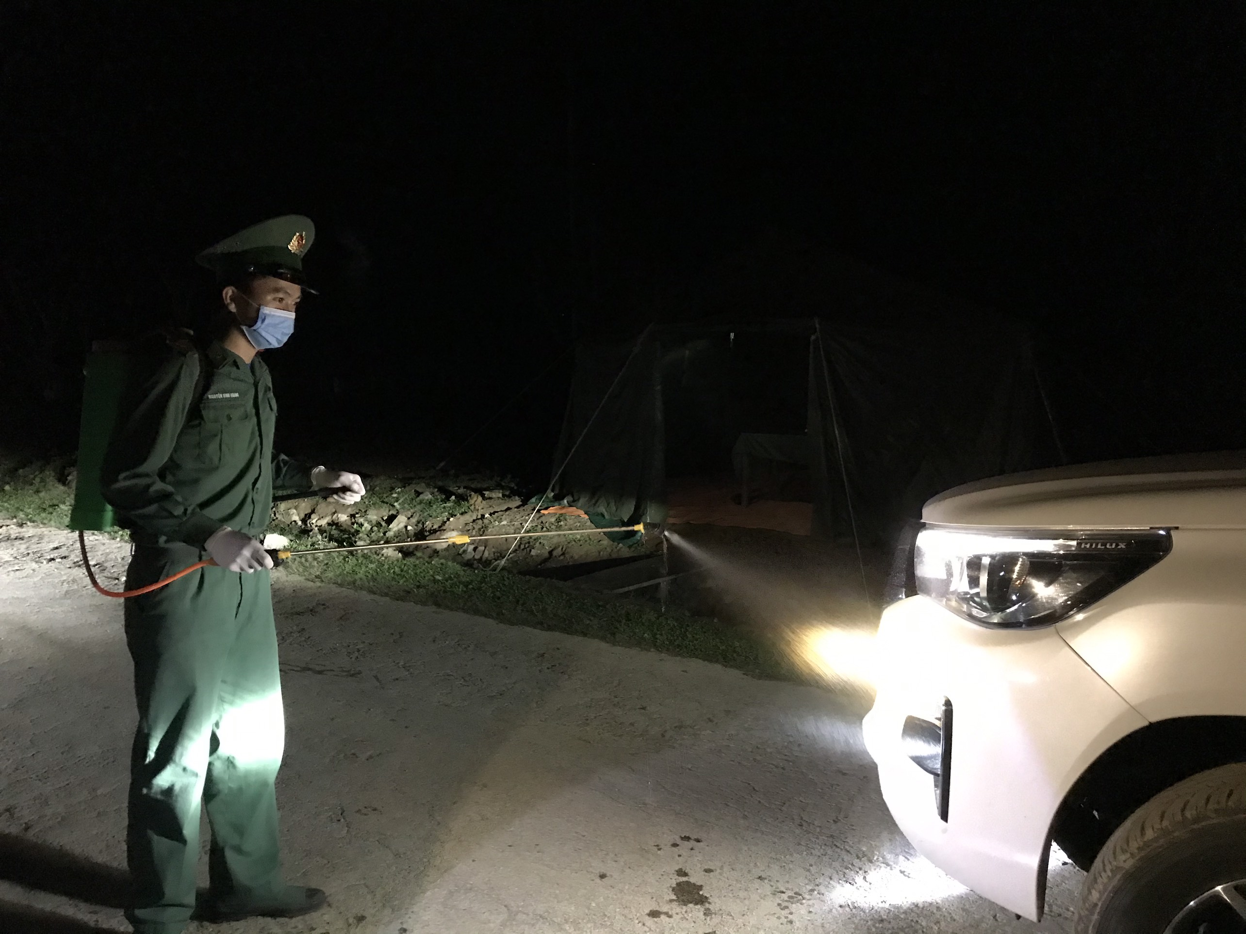 Đo thân nhiệt cho người ra vào khu vực biên giới
