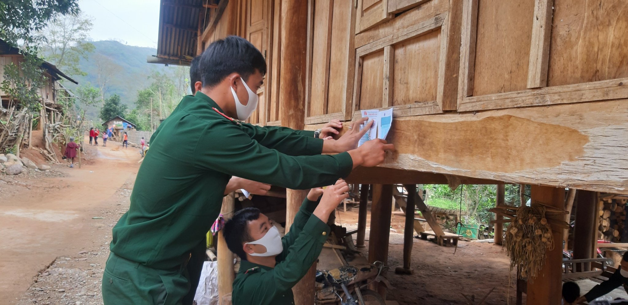Dán tài liệu tuyên truyền phòng tránh dịch bệnh tại các bản giáp biên