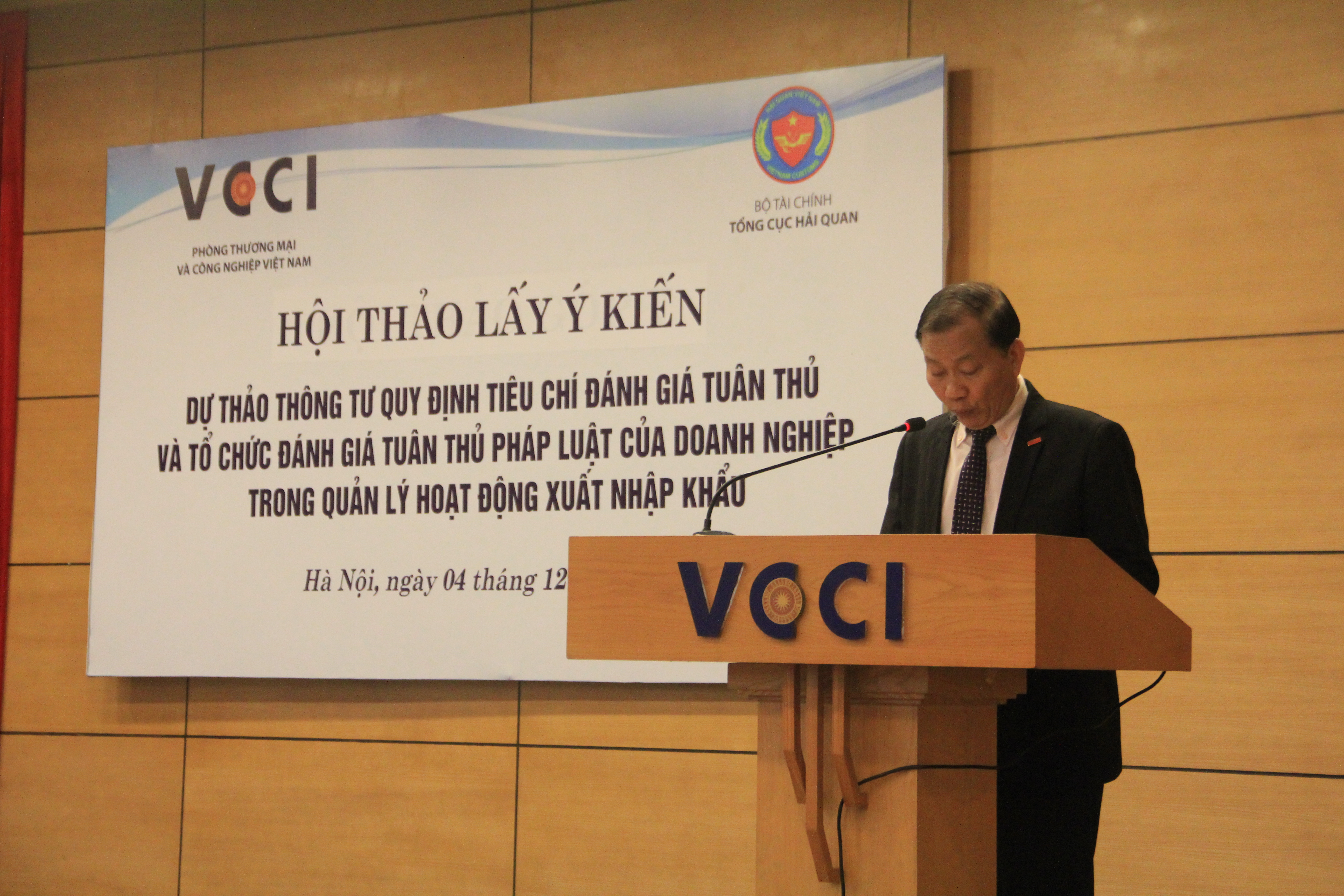 Sáng ngày 4/12, Phòng Thương mại và Công nghiệp Việt Nam (VCCI) phối hợp với Tổng cục Hải quan tổ chức buổi hội thảo lấy ý kiến của các doanh nghiệp về bản dự thảo lần 3 Thông tư quy định tiêu chí đánh giá tuân thủ và tổ chức đánh giá tuân thủ pháp luật của doanh nghiệp trong hoạt động xuất nhập khẩu và quá cảnh hàng hóa.