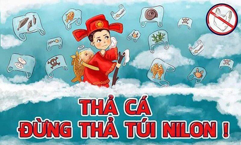 Đừng để Táo quân mang rác lên chầu - xin đừng ném túi nilong xuống sông hồ.