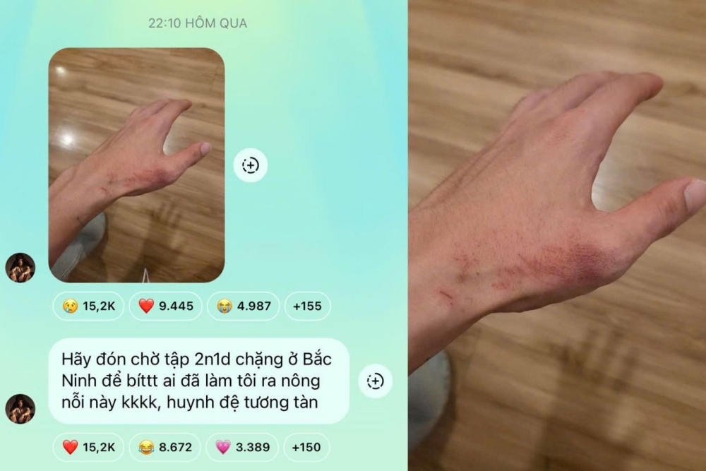 HIEUTHUHAI khiến người hâm mộ xót xa khi xuất hiện trong tình trạng tay có nhiều vết thương.