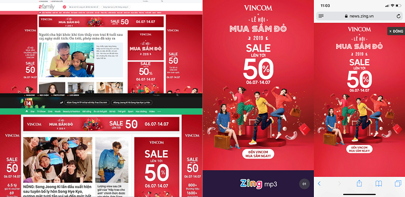 Trên khắp các tờ báo và trang tin giới trẻ như Afamily, Kenh14, Zing MP3, sắc đỏ Vincom Red Sale Carnival cũng hiện diện ở khắp nơi.