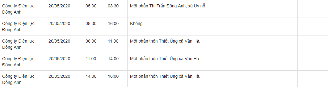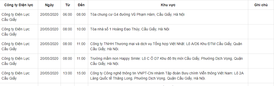 Lịch cắt điện của các quận, huyện trong thành phố Hà Nội hôm nay ngày 20/5.