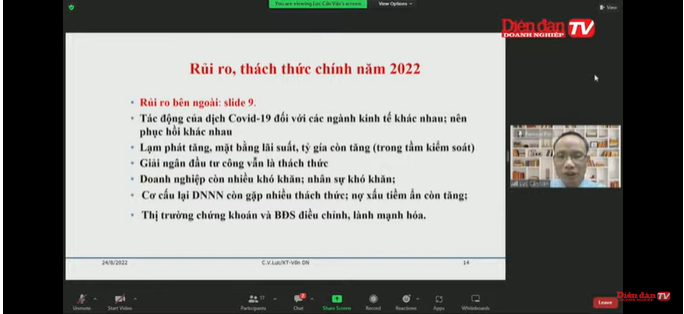 Tại Diễn đàn, nhận định về tình hình kinh tế - tài chính toàn cầu, TS. Cấn Văn Lực, Chuyên gia tài chính cho rằng, đà phục hồi sẽ chậm lại và tương đối khó khăn do ba yếu tố: dịch bệnh còn phức tạp, chiến lược zero- Covid của Trung Quốc và chiến sự Nga - Ukraine.