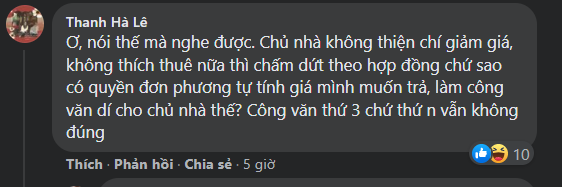 "Thì ra đây chỉ là công văn cho một thiểu số chủ cho thuê mặt bằng mà suốt quá trình làm việc từ đầu dịch đã không có thiện ý mà thôi. Trước đó đã có các công văn lần 1 và 2 khác với các nội dung mềm mại và hợp tác hơn. Mình đang xin thêm các công văn đợt trước để hiểu rõ thêm.