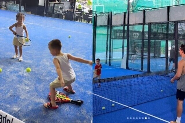 Vợ chồng Kim Lý thường xuyên cho con tham gia các bộ môn thể thao để nâng cao sức khỏe thể chất lẫn chiều cao.