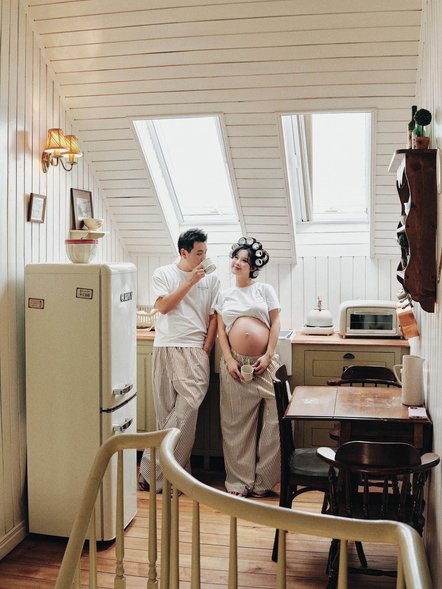 Hàn Hằng và Huyme khá kín tiếng kể từ sau đám hỏi. Chỉ đến khi hình ảnh sinh con được lan truyền trên mạng xã hội, cả hai mới tung bộ ảnh bầu cực yêu vào đầu tháng 9.