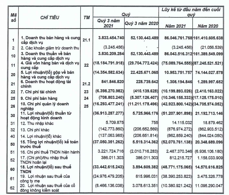 Kết quả kinh doanh NVT quý 3 và 9 tháng đầu năm