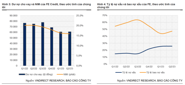 VNDirect cho rằng, FE Credit đã ghi nhận một khoản lỗ khoảng 2.000 tỷ đồng trước thuế trong quý 2/2023, cao hơn một chút so với quý 1/2023. VNDirect nhận định, công ty sẽ tiếp tục ghi nhận lỗ cho đến cuối năm nay, và kỳ vọng rằng công ty sẽ xử lý xong khoản lỗ chưa phân phối trong nửa cuối năm sau.