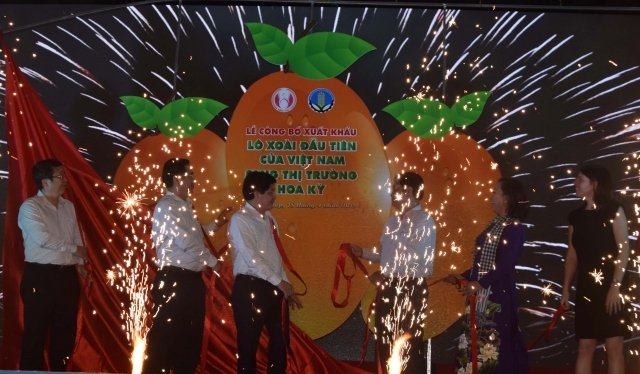 Cắt băng khánh thành tại Lễ công bố lô xoài đầu tiên xuất khẩu sang Mỹ. |