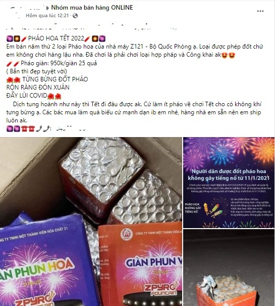 Một thông tin rao bán pháo hoa khác trên chợ mạng.