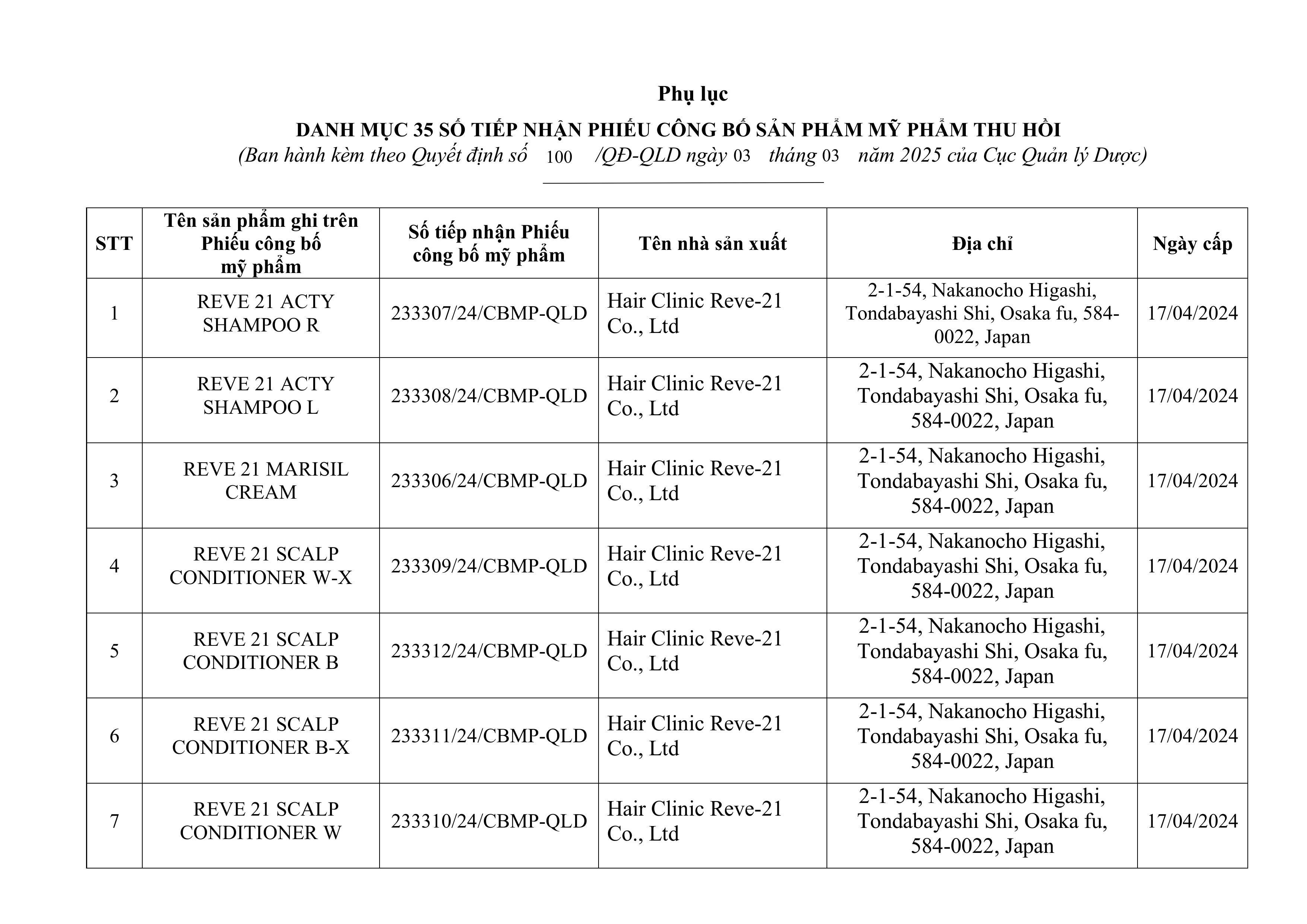 Cục Quản lý Dược (Bộ Y tế) vừa ra quyết định thu hồi 35 số tiếp nhận Phiếu công bố sản phẩm mỹ phẩm của Công ty Cổ phần Bizlink (có địa chỉ tại tòa nhà VMT, số 1 ngõ 82 Duy Tân, quận Cầu Giấy, TP Hà Nội).