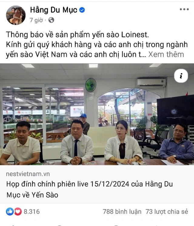 Theo bài đăng trên trang Facebook, trong buổi livestream ngày 15/12/2024, Hằng Du Mục và Quang Linh Vlogs đã quảng cáo về các hũ yến chưng với nhiều hương vị, cam kết thơm ngon và tốt cho sức khỏe.