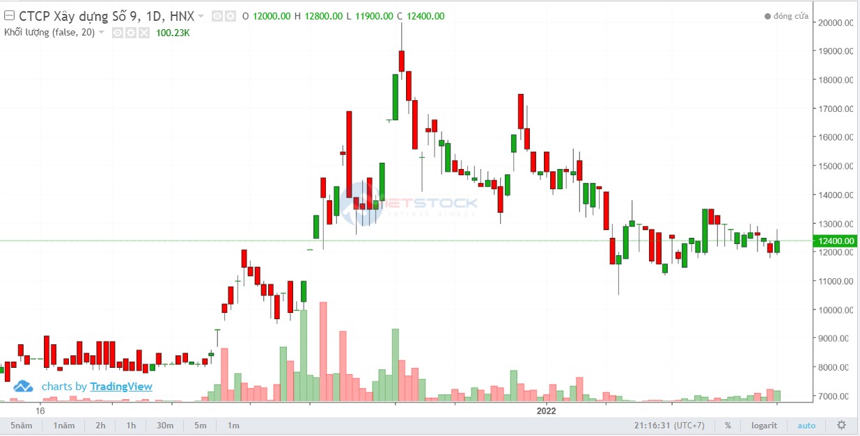 Trên thị trường, cổ phiếu Công ty CP Xây dựng số 9 chốt phiên giao dịch ngày 28/2 đứng ở thị giá 12.000 đồng/cổ phiếu. Hiện Công ty CP Xây dựng số 9 vẫn đang nằm trong diện kiểm soát từ ngày 30/3/2021, do lợi nhuận sau thuế năm 2019 và năm 2020 của tổ chức niêm yết là số âm.