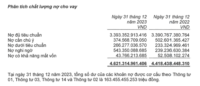 Quy mô nợ xấu (nợ nhóm 3-5) tăng cao khiến tỷ lệ nợ xấu của công ty tài chính này tăng từ 13% ở thời điểm đầu năm lên hơn 18,4% tại thời điểm kết thúc năm 2023.