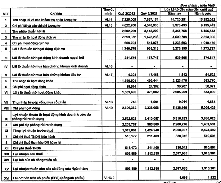 Bên cạnh đó, do chi phí hoạt động tăng gần 12% lên gần hơn 2.600 tỷ đồng, cùng việc phải chi ra tới 2.200 tỷ để trích lập dự phòng rủi ro tín dụng, tăng 2,2 lần so với cùng kỳ, lợi nhuận sau thuế của Sacombank trong quý 2/2022 sụt giảm gần 28% về còn gần 804 tỷ đồng.