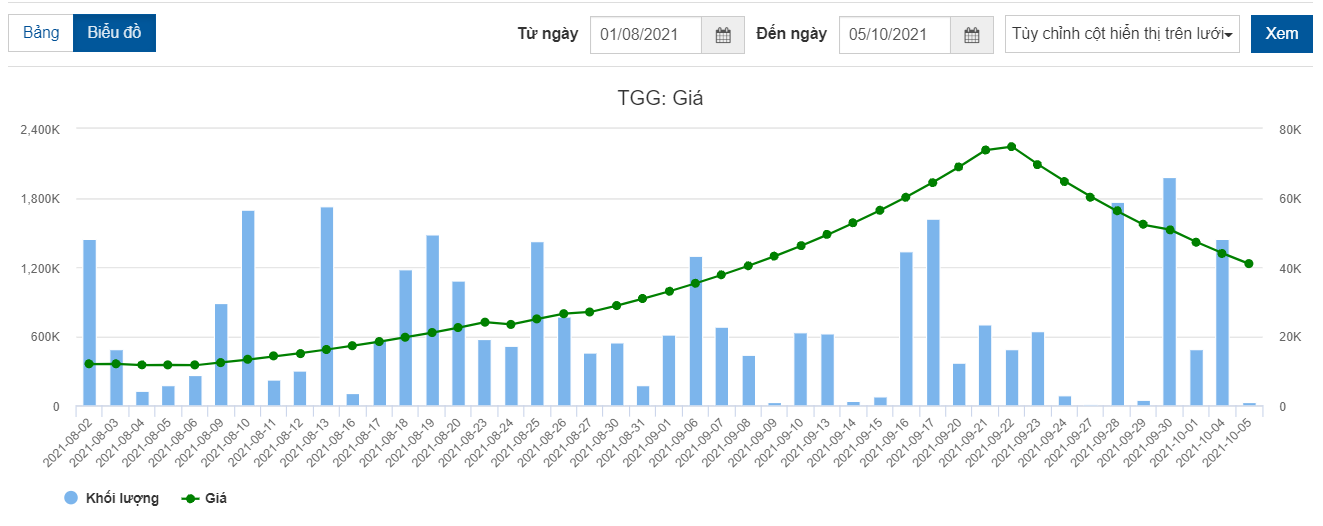 Chốt phiên giao dịch ngày 5/10, cổ phiếu TGG tiếp tục giảm sàn về mức 40.900 đồng/cp, với chỉ khớp lệnh 31.000 đơn vị và dư bán hơn 1 triệu đơn vị.
