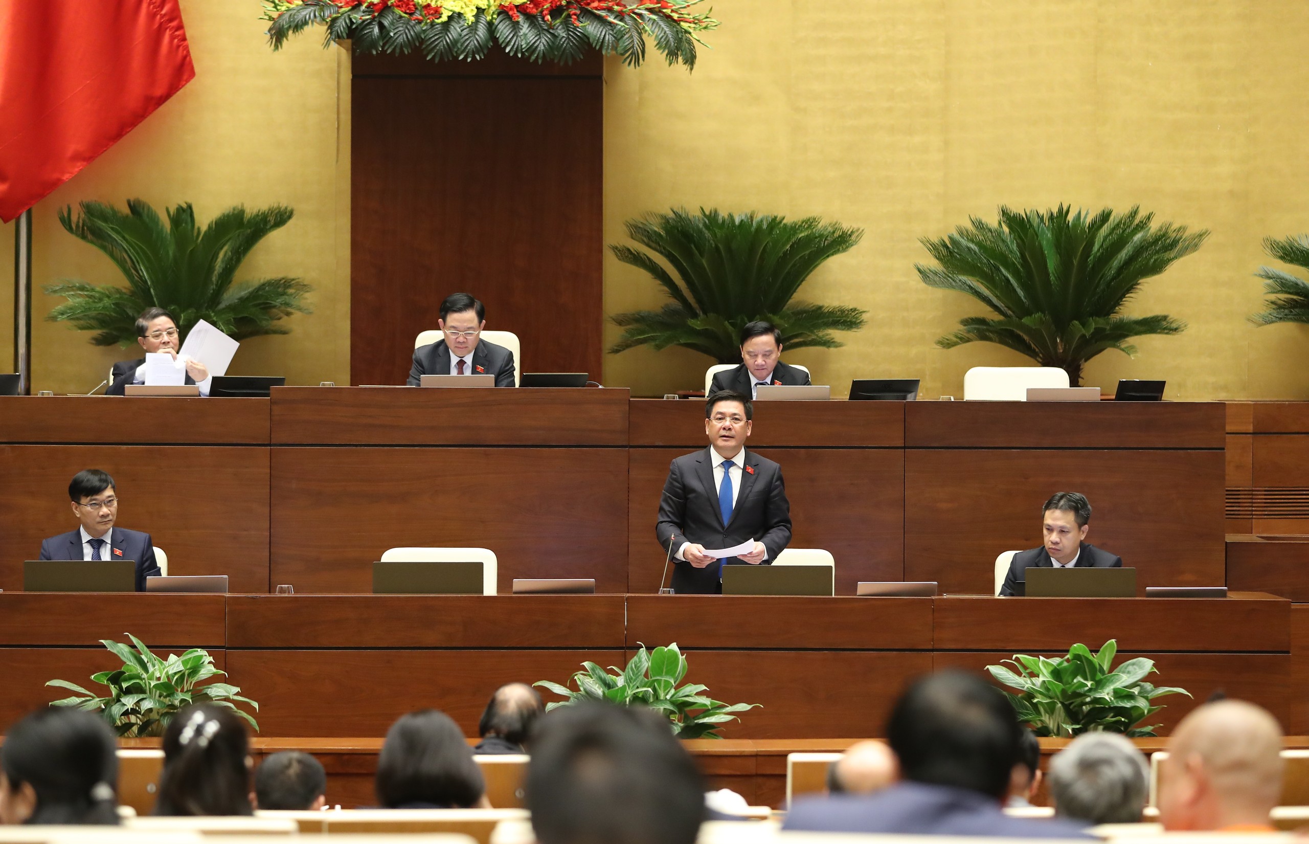 Bộ trưởng Bộ Công Thương Nguyễn Hồng Diên trình bày Tờ trình về dự án Luật Bảo vệ quyền lợi người tiêu dùng (sửa đổi). Ảnh: Quochoi.vn