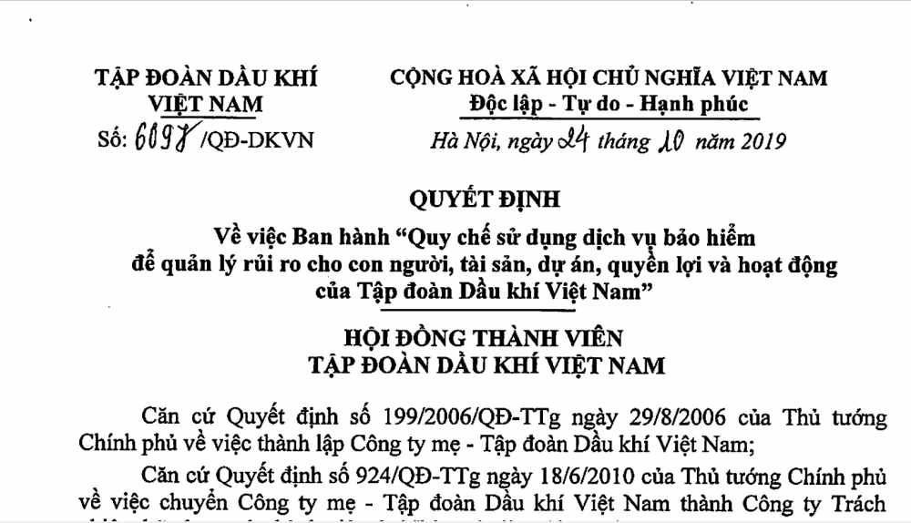 Quyết định 6097 của Tập đoàn Dầu khí Việt Nam.