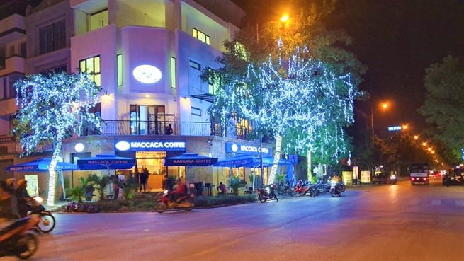 Khung cảnh Maccaca Coffee lung linh về đêm