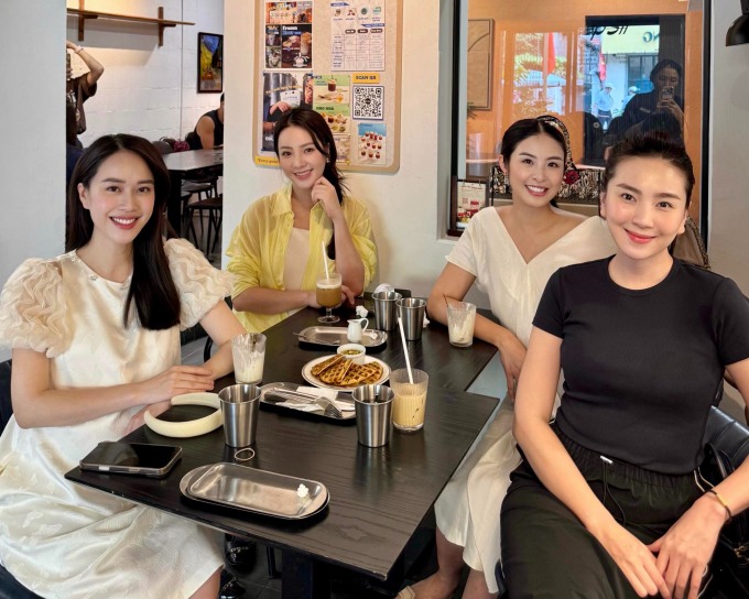 Thời điểm bầu sắp "vượt cạn", Mai Ngọc cũng chia sẻ bức hình trà chiều cùng các chị em như hoa hậu Đỗ Mỹ Linh, á hậu Thanh Tú, hoa hậu Ngọc Hân, á hậu Hoàng Anh để xin kinh nghiệm.