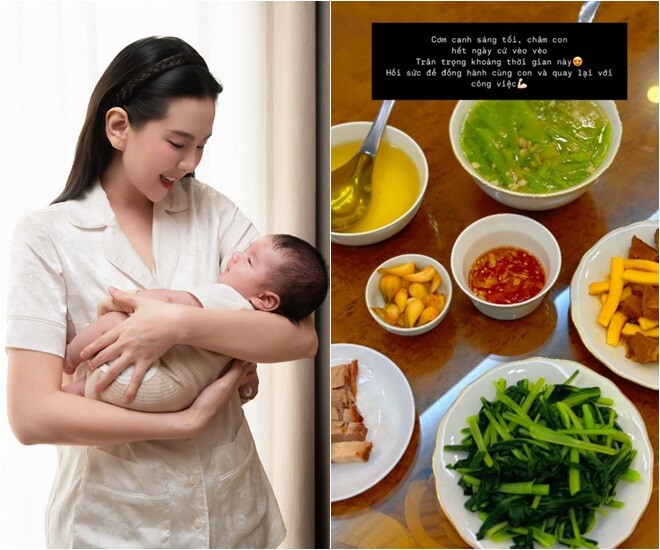 Dù lần đầu làm mẹ nhưng Mai Ngọc được khen khéo chăm con.