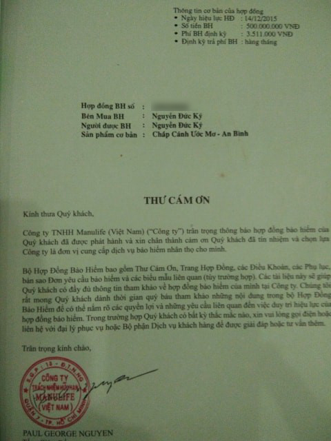 Trao đổi với PV, anh Nguyễn Đức Ký cho biết, anh sẵn sàng bỏ luôn số tiền 4 năm qua anh đã đóng vì quá mất niềm tin vào Manulife Việt Nam.