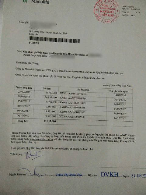 Giải quyết khiếu nại của khách hàng theo kiểu "câu giờ" nhưng Manulife Việt Nam vội vàng chấm dứt hợp đồng khi khách hàng yêu cầu như kiểu “sống chết mặc bay”?!