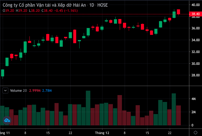 Trên thị trường, giá cổ phiếu HAH có nhịp tăng từ đầu tháng 11 đến nay. Kết phiên 26/12, giá mã này dừng tại 38.400 đồng/cp, tăng 37,6% sau gần hai tháng
