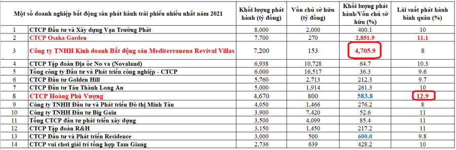 Thời gian vừa qua, thị trường trái phiếu đã bộc lộ khá nhiều những vẫn đề tiêu cực. Vì thế Công ty TNHH kinh doanh bất động sản Mediterranena Revival Villas (nay đã đổi tên thành Công ty TNHH kinh doanh bất động sản Masterise Dream City Villas) đang được nhiều nhà đầu tư chú ý. Bởi, công ty này nằm trong danh sách doanh nghiệp phát hành trái phiếu nhiều nhất năm 2021 với 7.200 tỷ đồng.