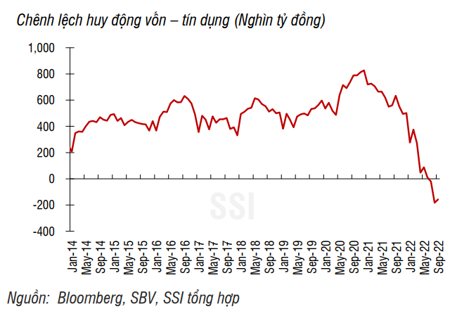 Áp lực lên mặt bằng lãi suất huy động và cho vay còn khá cao trong giai đoạn còn lại của năm, khi chênh lệch huy động vốn – tín dụng ở mức âm hơn 200 nghìn tỷ đồng.