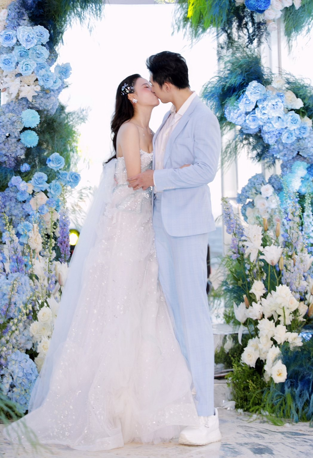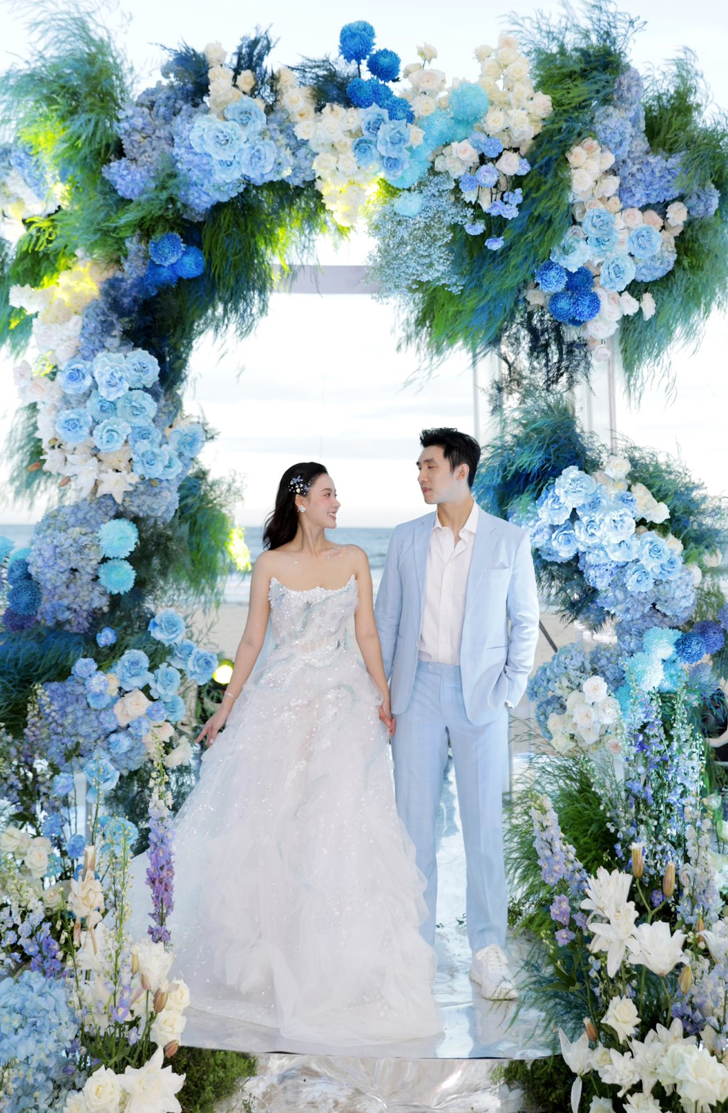 Tiếp đó, cô nhắn nhủ ngôn tình tới bạn đời: "Vì người yêu mình thích màu xanh, nên mình cứ thế chuẩn bị một buổi tiệc với tone màu của biển". Chỉ cần từng ấy thôi cũng đủ thấy nữ diễn viên yêu và chiều chồng thế nào.