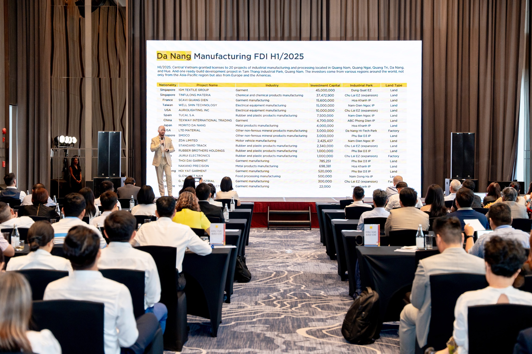 Theo thống kê của Savills, chỉ riêng nửa đầu năm 2025 đã có 20 dự án sản xuất chế biến công nghiệp vốn FDI được cấp phép tại miền Trung, trải dài từ Quảng Nam, Quảng Ngãi, Quảng Trị, Thừa Thiên Huế đến Đà Nẵng. Nhà đầu tư không chỉ đến từ châu Á (Singapore, Nhật Bản, Đài Loan) mà còn có doanh nghiệp châu Mỹ, châu Âu, phản ánh sự đa dạng hóa và niềm tin ngày càng gia tăng.