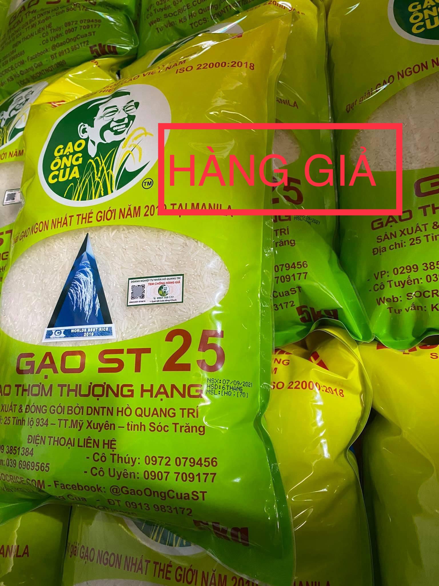 Ngày 17/9, Anh hùng Lao động - Hồ Quang Cua, “cha đẻ” của giống gạo ST25 - gạo ngon nhất thế giới năm 2019, cho biết để ngăn chặn tình trạng làm giả gạo này, từ đầu tháng 8/2021, DNTN Hồ Quang Trí (huyện Mỹ Xuyên, tỉnh Sóc Trăng) của ông đã tung ra thị trường gạo ST25 (loại túi 5kg).