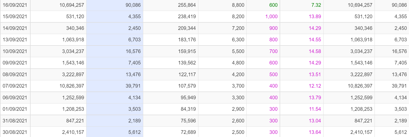 Dữ liệu giao dịch cổ phiếu KHB trong 12 phiên gần đây. Nguồn: Vietstock