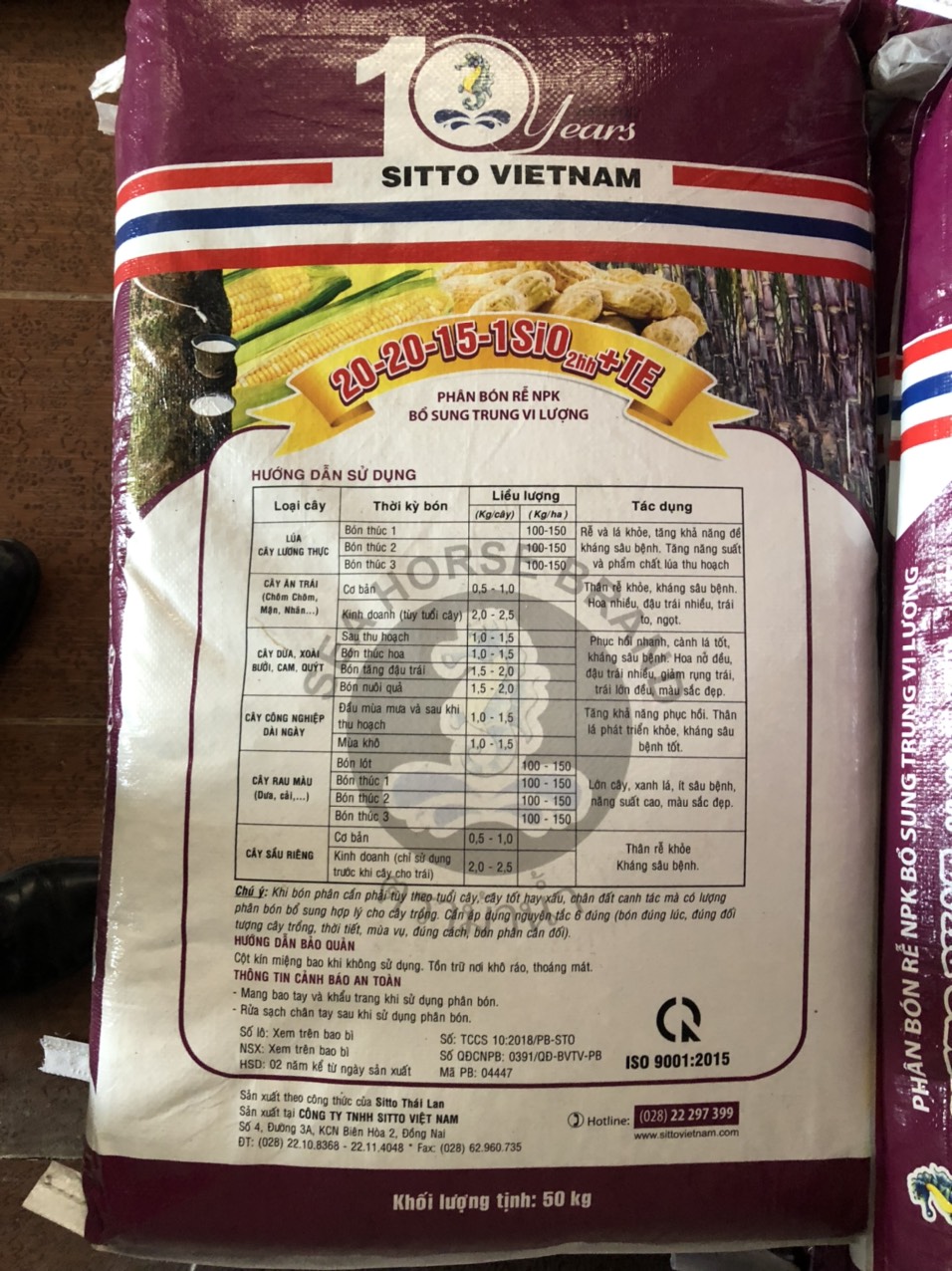 Đoàn kiểm tra 2 mẫu phân bón để kiểm nghiệm bao gồm: Phân bón rễ NPK bổ sung trung vi lượng SITTO PHAT 20-20-15+1SiO2hh + TE và Phân bón NPK bổ sung trung vi lượng SITTO PHAT 14-8-6+1SiO2hh + TE do Công ty TNHH SITTO Việt Nam sản xuất.