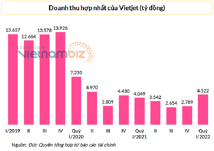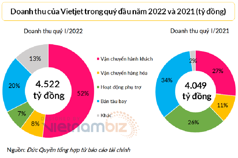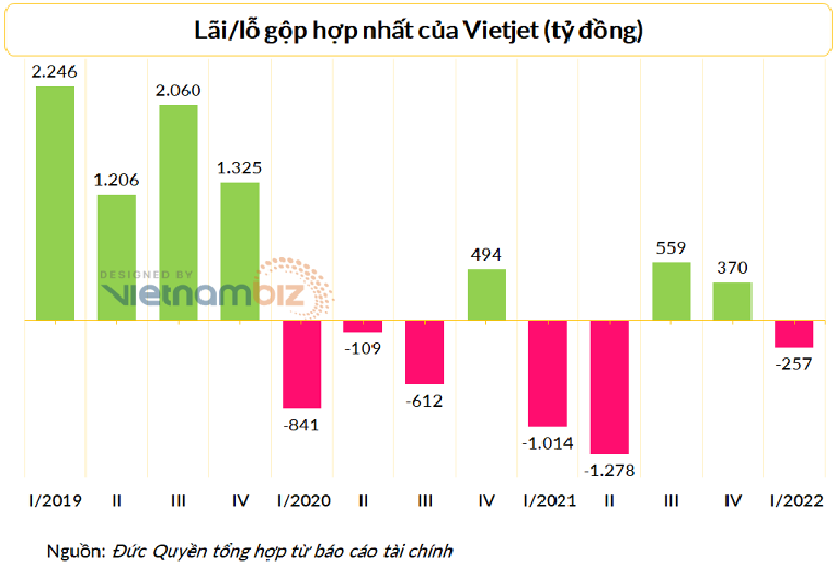 Tổng cộng tất cả mảng hoạt động, Vietjet ghi nhận lỗ gộp 257 tỷ đồng trong quý I/2022, giảm đáng kể so với khoản lỗ 1.014 tỷ của quý đầu năm ngoái.